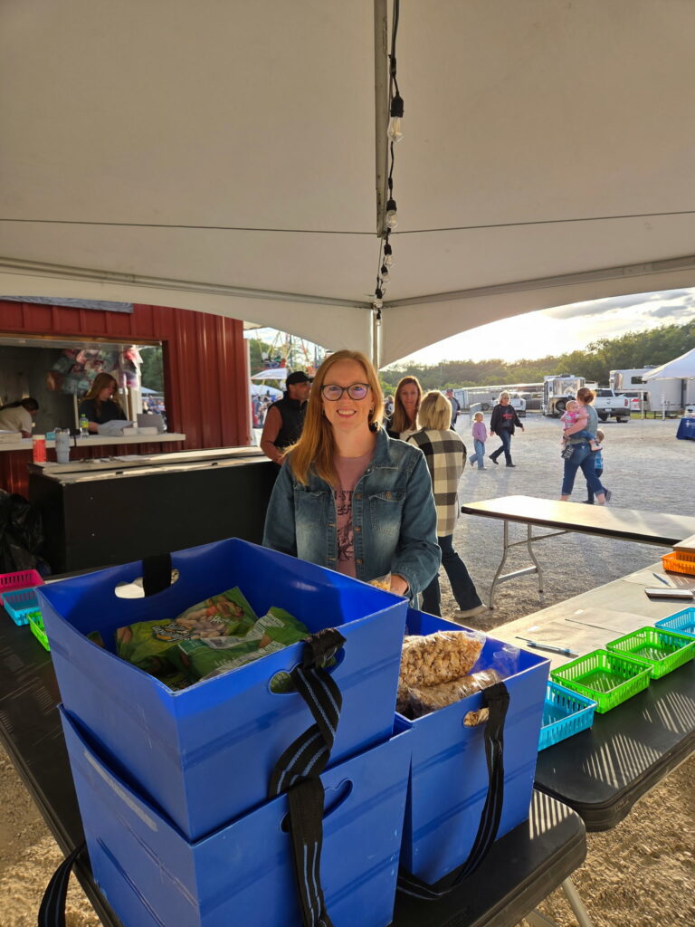 Bethany volunteered as a “hock filler,” loading baskets and cotton candy sticks for kids to sell in the stands. She also counted money to ensure sales were tracked accurately, helping maximize proceeds for the Association.