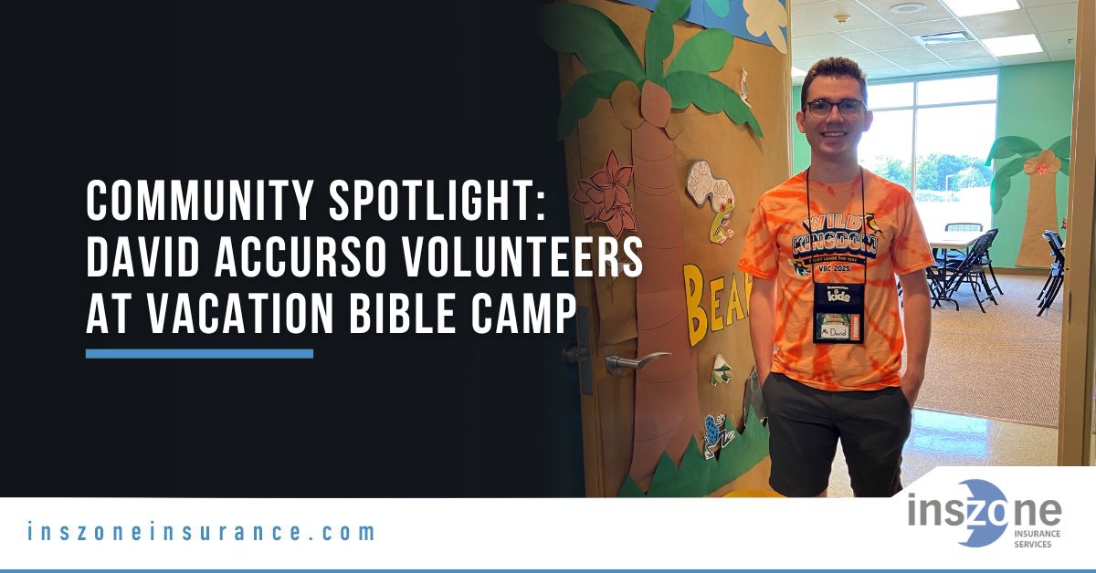 At Inszone Insurance Services, we proudly recognize employees who use Charitable Time Off (CTO) to make a meaningful impact in their communities. This past July, David Accurso volunteered at Vacation Bible Camp 2025, hosted by the Church of the Resurrection, where he spent the week helping create a positive and engaging environment for young children.