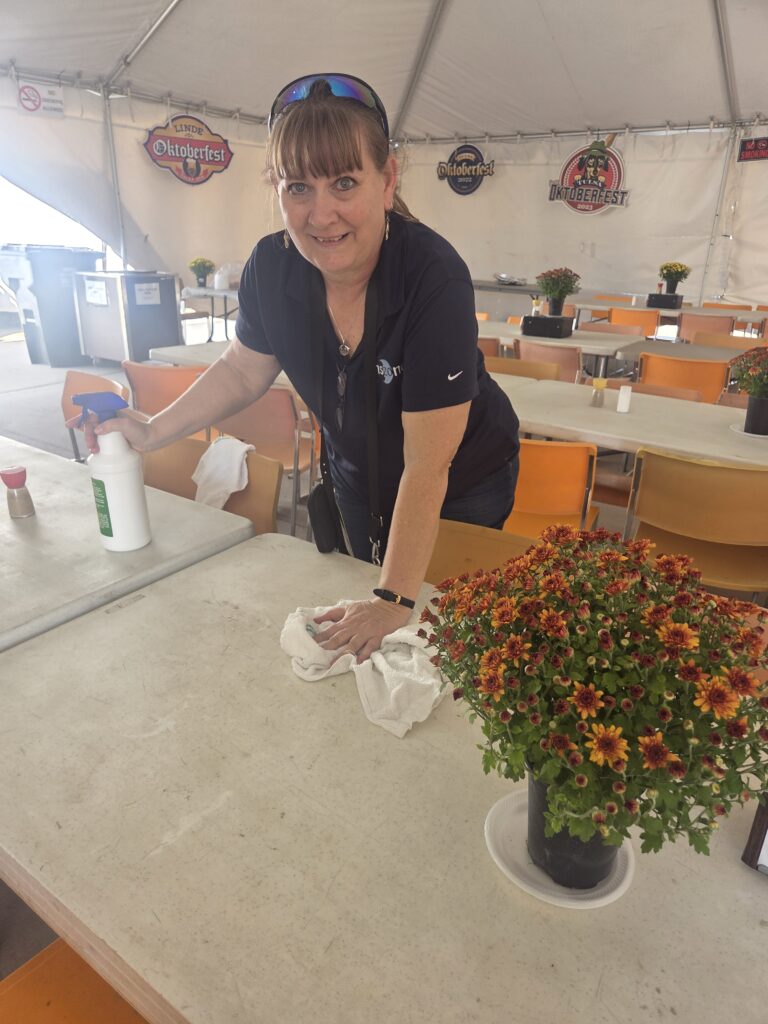 Tina has been part of Oktoberfest since 1986, when a friend first invited her to help check IDs. Over the years, she’s served in multiple leadership roles, including Vice Chair and Chair of the ID Committee, ensuring the event’s safety and organization. Since 2001, she’s also played a key role in the Extended Duty Tent (EDT), which provides meals to volunteers working long hours. Last year alone, the EDT team served more than 2,600 meals over three and a half weeks.